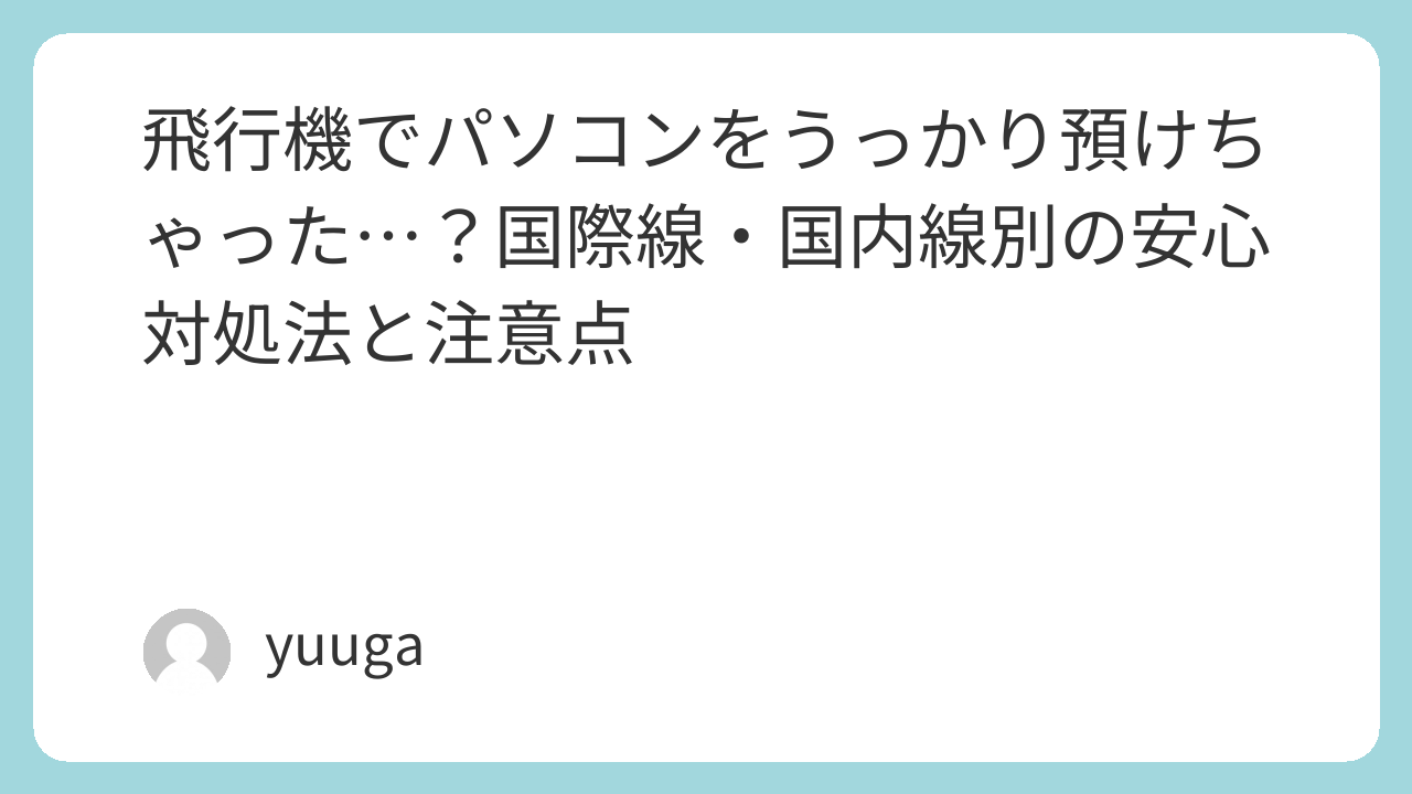 この記事では、国際線でパソコンを預けてしまったときの対処法を中心に、国内線との違いやリスク、そして再発防止のポイントまで、女性にもわかりやすく丁寧に解説しています。